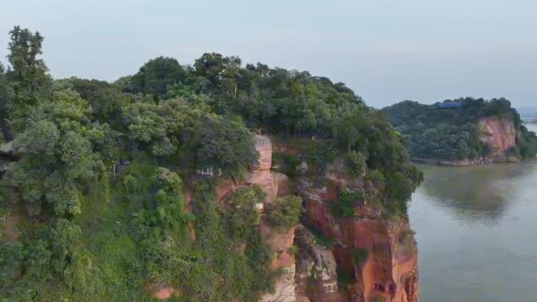 Vista aérea impressionante do Grande Buda de Leshan