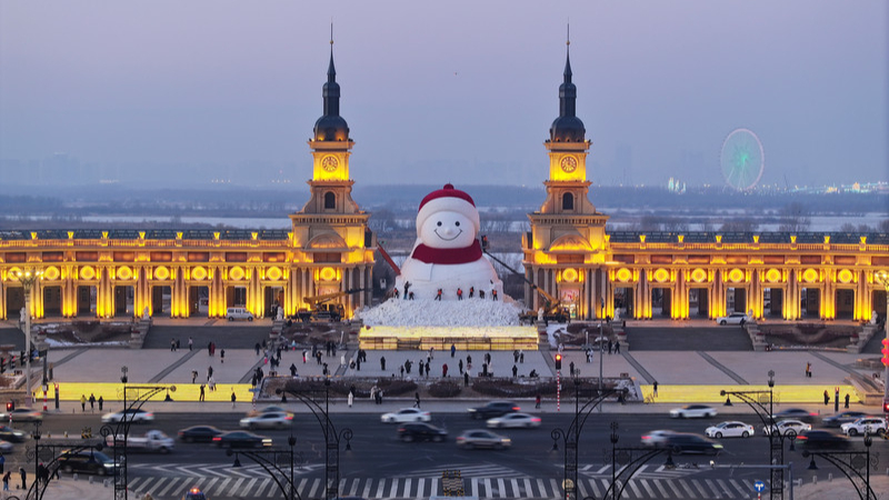 Boneco de neve gigante se torna novo cartão-postal de inverno em Harbin
