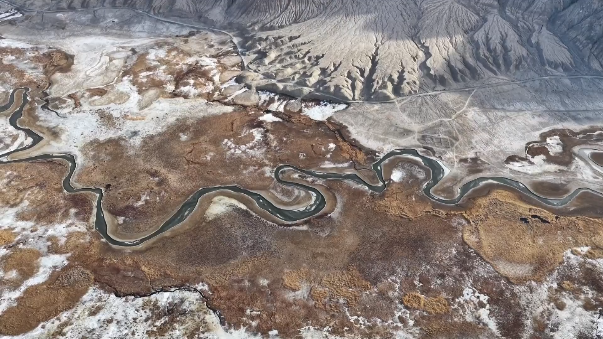 Montanhas e pântanos em Xinjiang ganham encanto do inverno