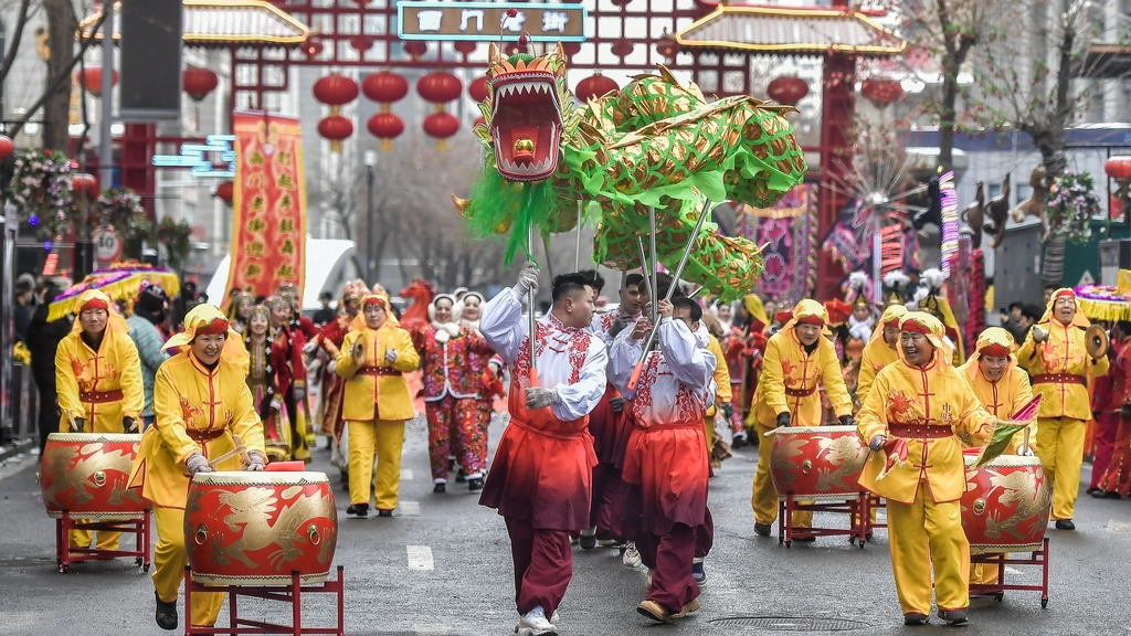 Desfile folclórico festivo é realizado em Urumqi