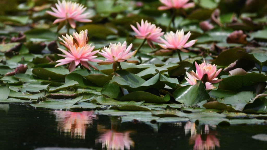 Lírios-d’água em plena floração colorem Hangzhou